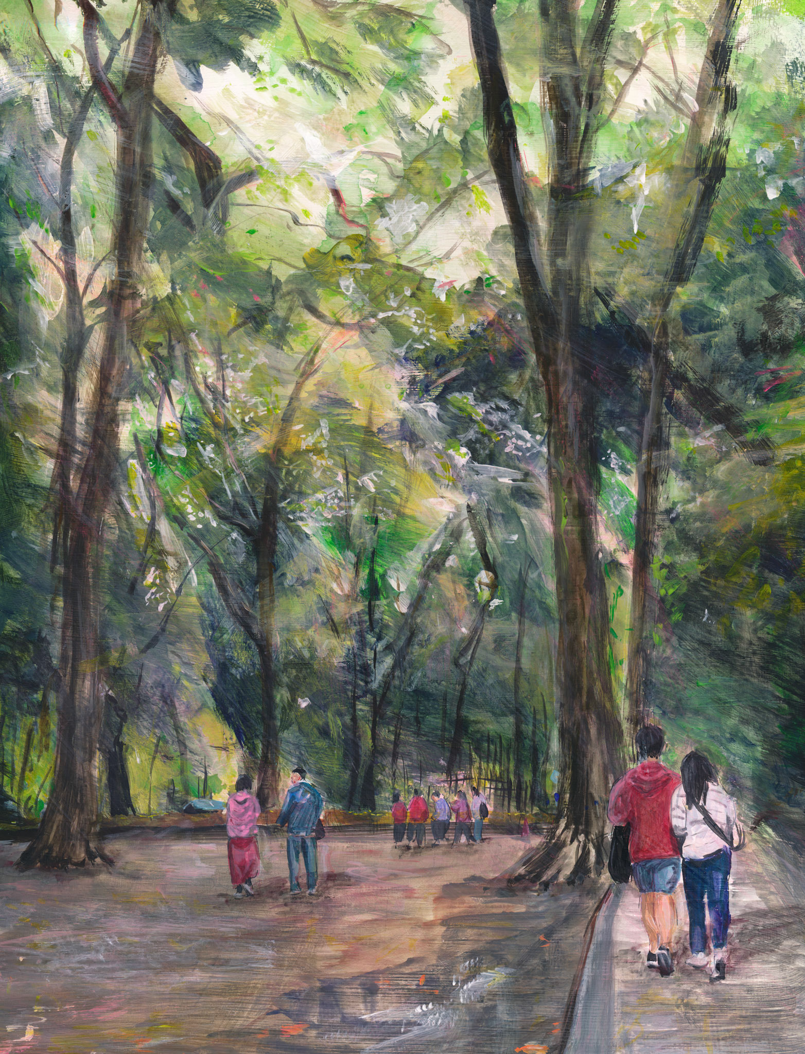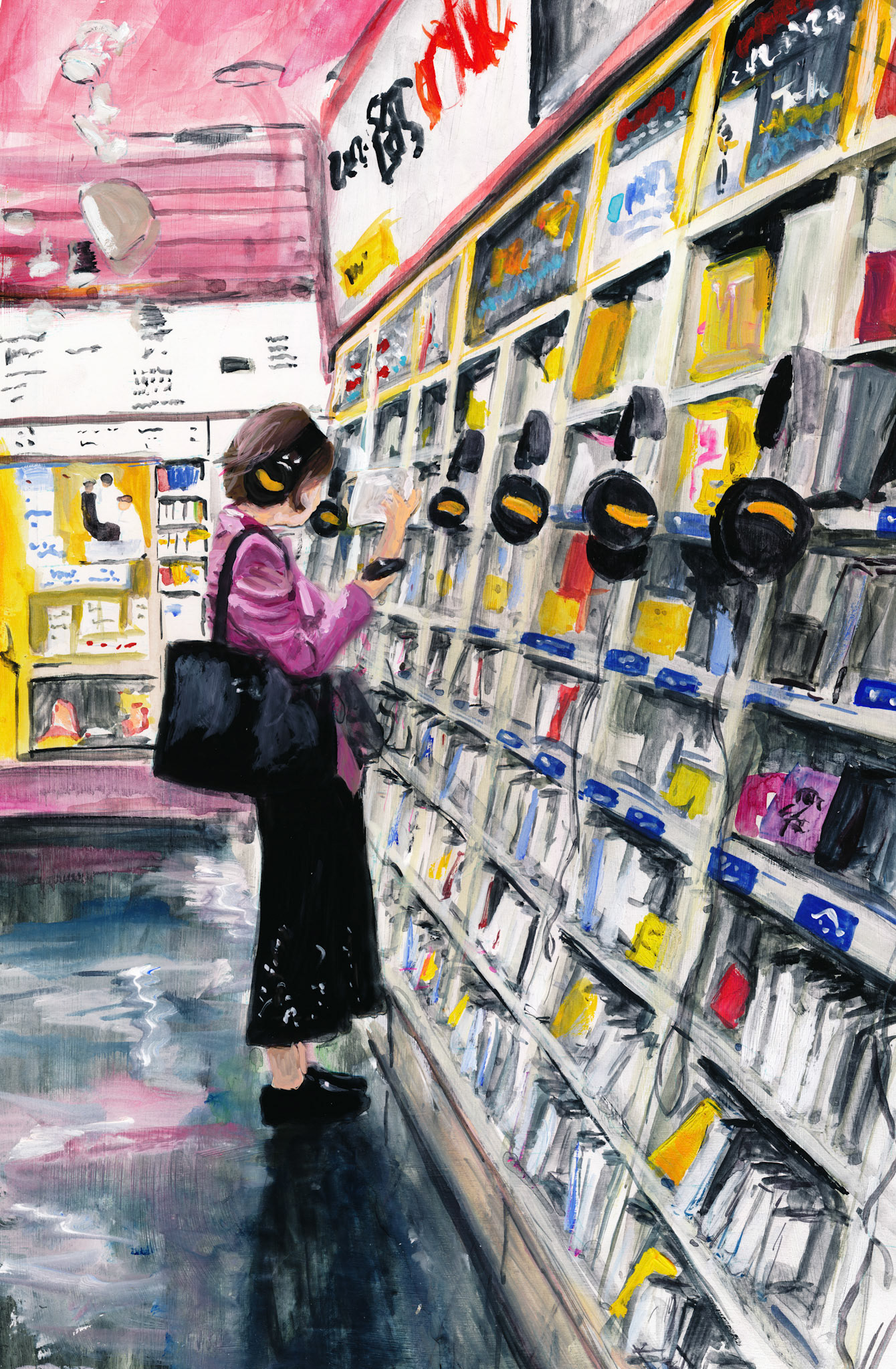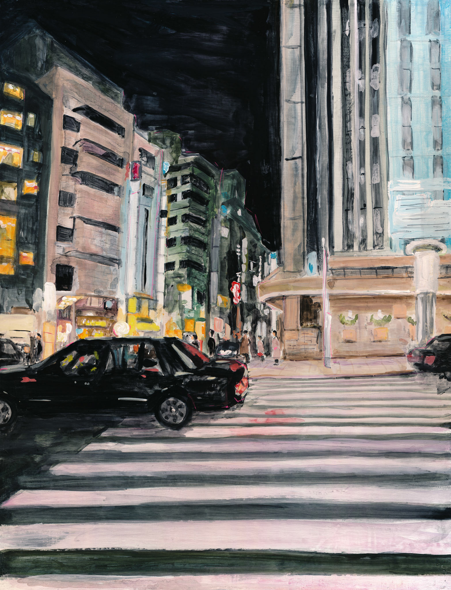 This is a city intimately familiar to me—a place I visited for fun in my youth and now frequent for exhibitions. Here, the lives of countless people of all ages cross paths, creating a vortex of human energy and emotional stir. The scramble crossing, a symbol of this district, perfectly embodies this chaotic vibrancy. Yet, within that hustle, there exists a fleeting moment of calm—a sudden lull. In that instant, I feel as though the thoughts of the crowd are suspended and sealed in time. I chose this theme to express that "pocket of silence"—a quiet void hidden
