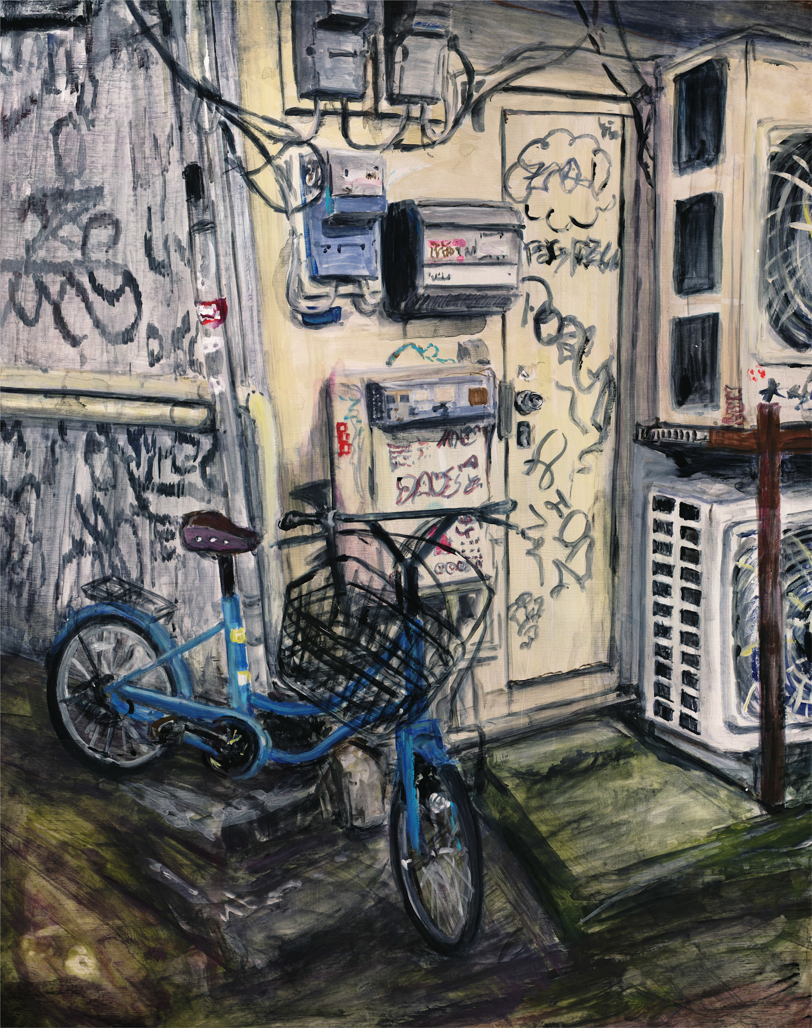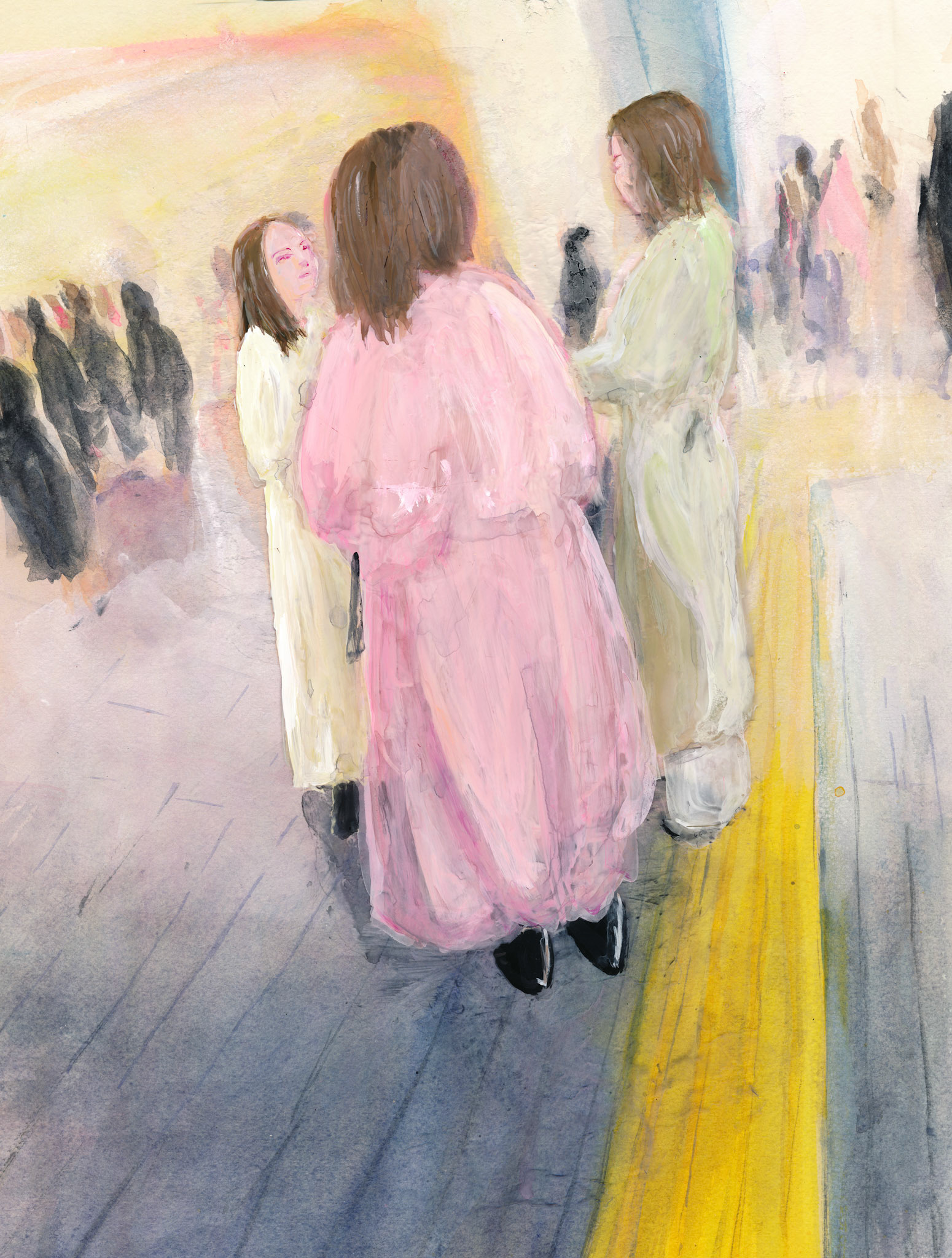 若い頃は遊びに、近年では展示のために通う、私にとって馴染みの深い街。そこには老若男女、無数の人々の人生が交差し、エネルギーと感情のざわめきがうずまいています。 この街の象徴であるスクランブル交差点は、まさに街そのものを表していると言えます。その喧騒の中にふと訪れる、凪のような一瞬、そこには、人びとの想いが閉じ込められているように感じます。そんな都市のエアポケットのような世界観を表現したく、このテーマを選びました。
